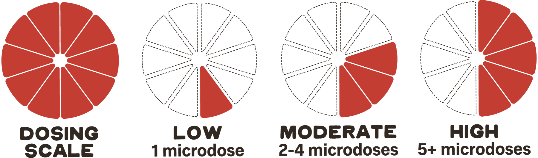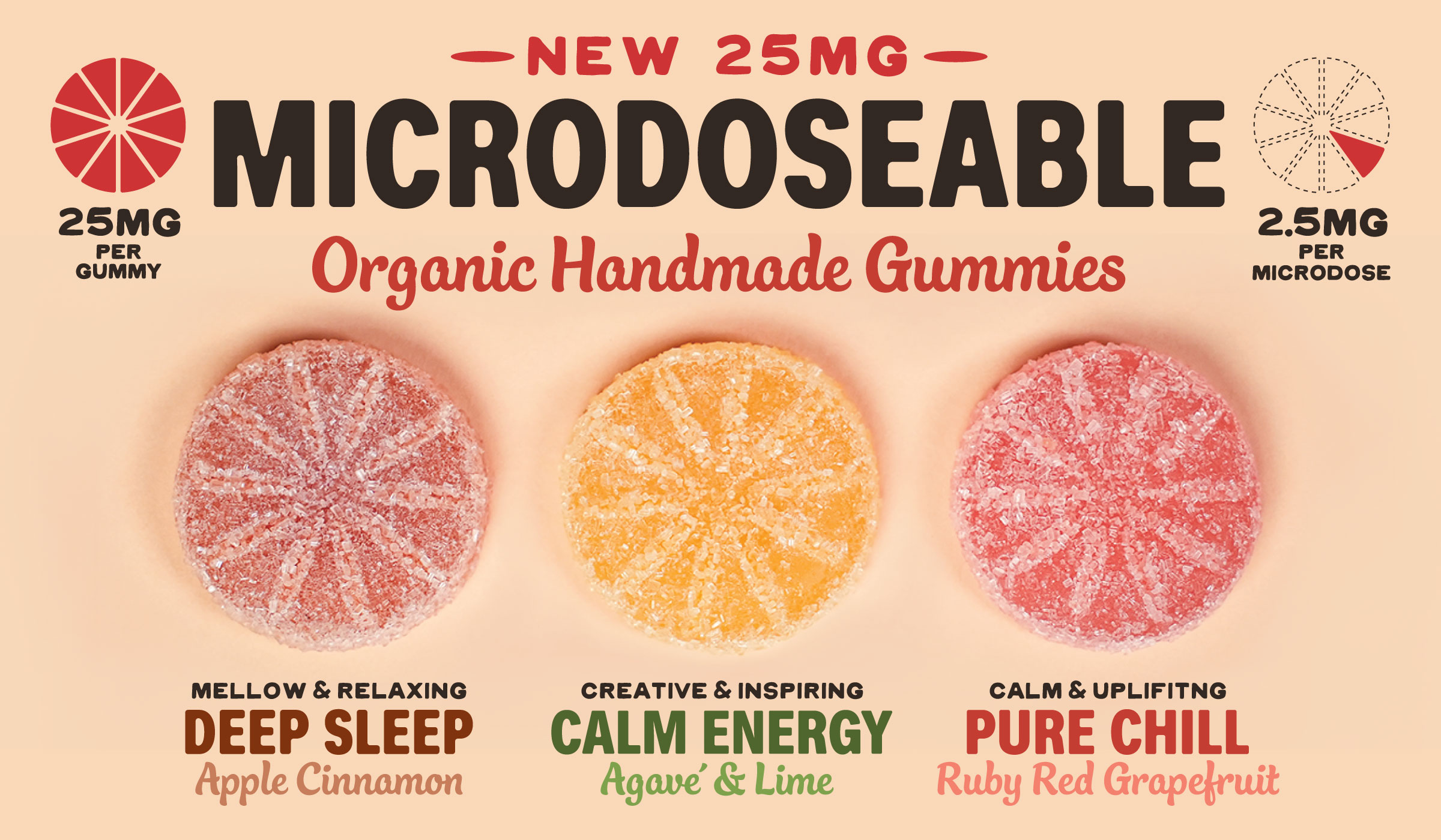 25mg per gummy, or ten 2.5mg microdoses.
